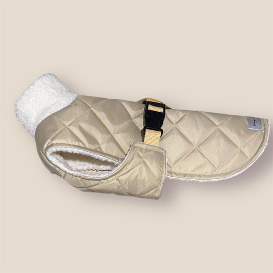 Latte Quilted Full Tummy Coat with Fleece Lining