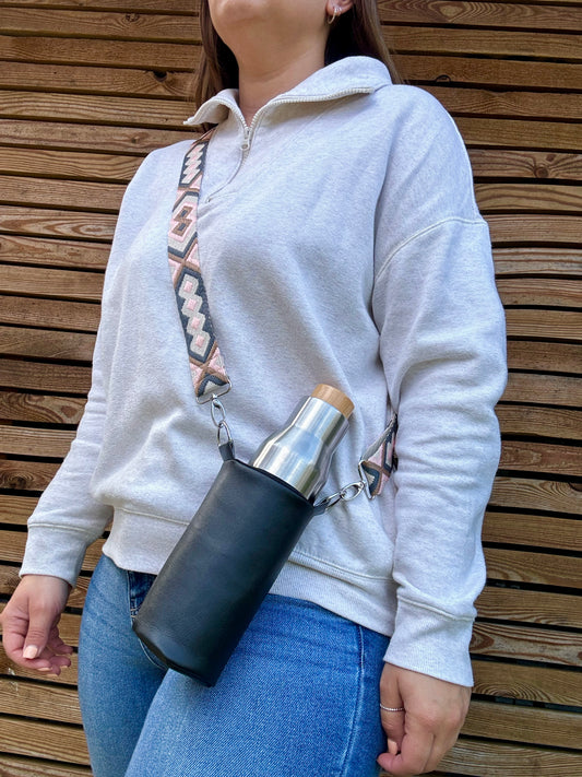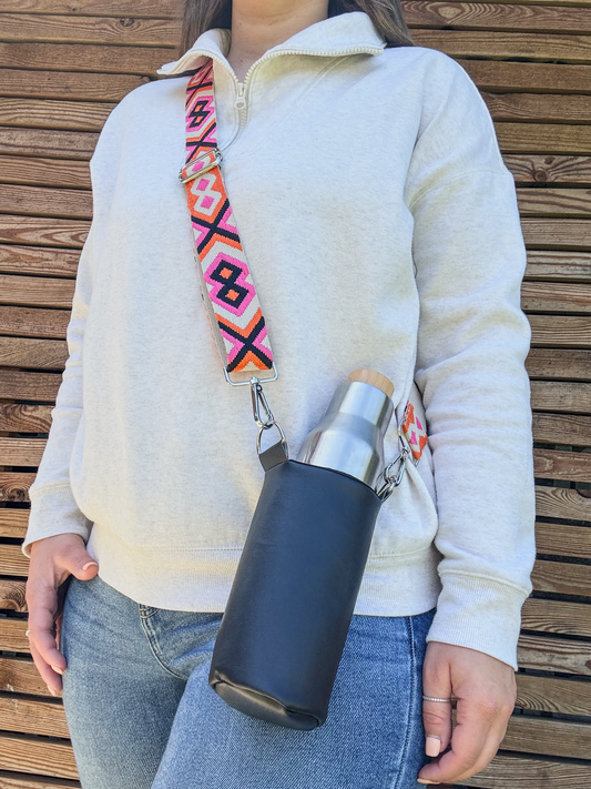 Black Hydrate & Hike Bag with Beige & Pink Strap