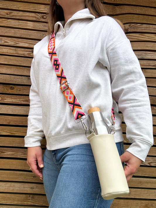 Beige Hydrate & Hike Bag with Pink & Orange Strap