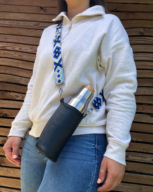 Black Hydrate & Hike Bag with Blue & Beige Strap