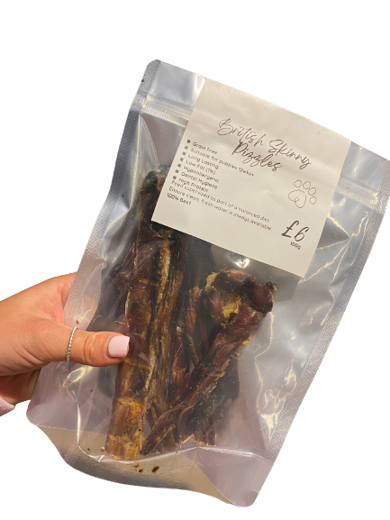 Our British Skinny Pizzles are considered one of the highest quality natural treats. Slowly dried, they produce a long-lasting, natural alternative to dental sticks and chews. On average, a large dog will take around 40 minutes to fully consume 1 stick.